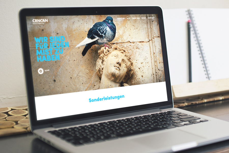 Das Corporate Design baut auf dem Slogan der Texterin Christine Wurm auf: "Klingt nach sauberer Arbeit". Nachhilfe bezüglich korrekter Aussprache bekommt der Leser mittels Lautschrift. Emanuela Crncan betreibt erfolgreich eine Reinigungsfirma, kein Imperium, aber einen gesund wachsenden Familienbetrieb mit Handschlagsqualität. Die Abbildungen zeigen die Corporate Identity und Screenshots der responsive Website.